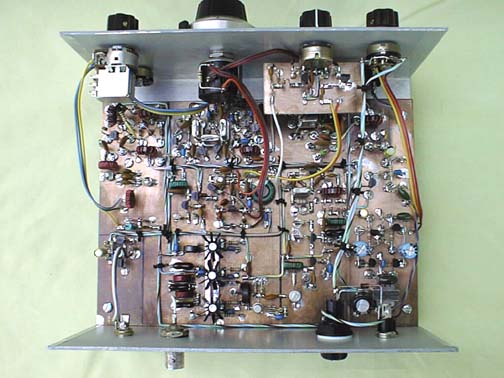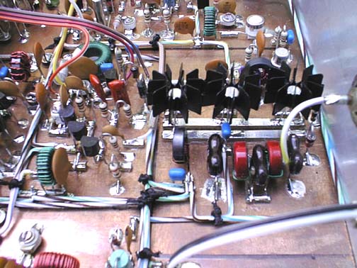 A closeup shot of the output transistors and low pass filter. To the left is the VFO circuitry. |