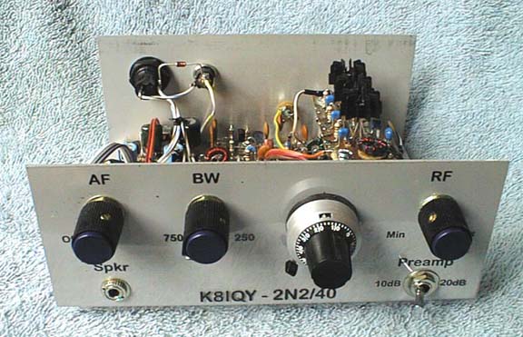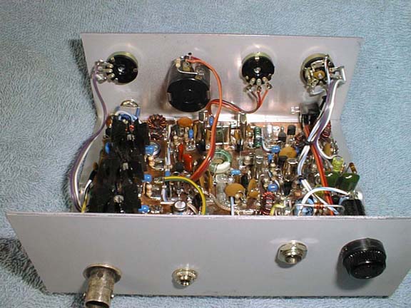 Looking from the right side, with the elevated 3-2N2222 transistor final.